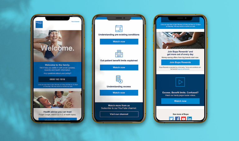 Bupa had built an email programme to welcome new customers. Its aim was to create a seamless customer journey from policy take-up to the end of the first year, meeting the needs of various audience, improving customer engagement, retaining business, and creating brand advocates.