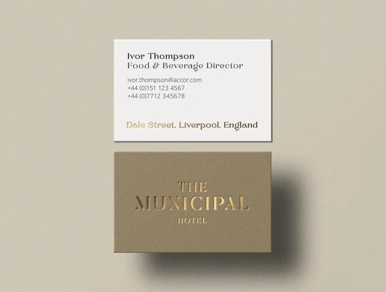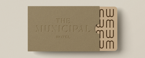 The brand palette took inspiration from the interior and exterior of the building – to help further represent The Municipal Hotel authentically and intimately. The sandstone set represents the original exterior of the building, with colour samples taken from the different tones within the sandstone. The dark brown is taken from the listed parquet wall panels found on the interior walls of the building. Metallic bronze references the bronze cladding of the hotel’s new spa complex extension.