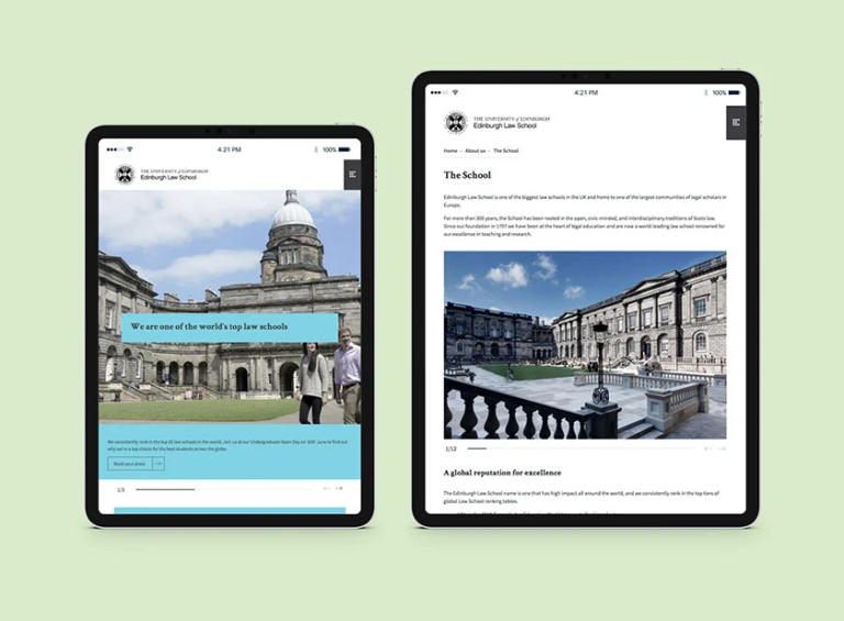 Our primary challenge was to create a visual style that would be clearly recognisable as Edinburgh Law School but remain aligned with the University’s core brand.